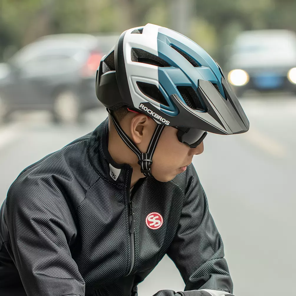 Kask rowerowy Rockbros MTB cross city czarno-nieb-biały